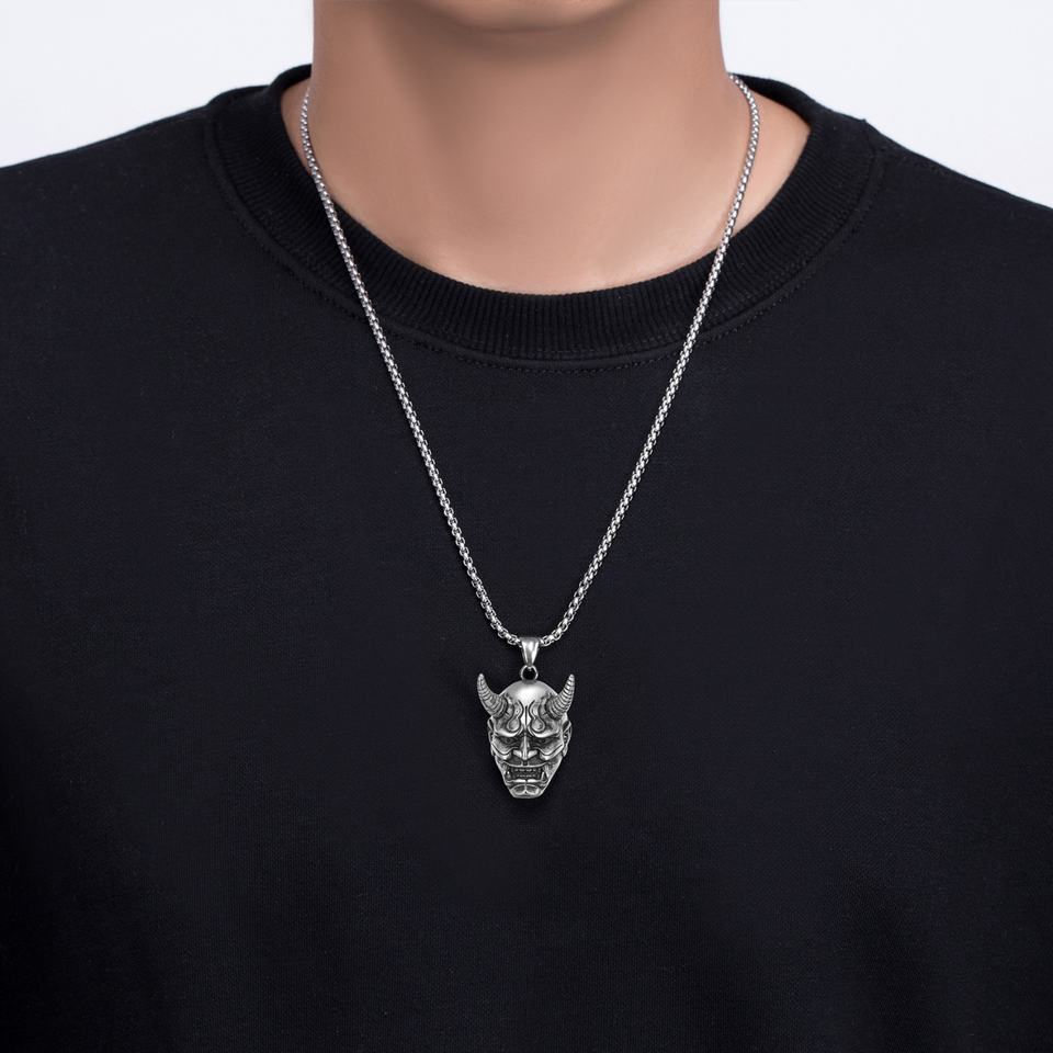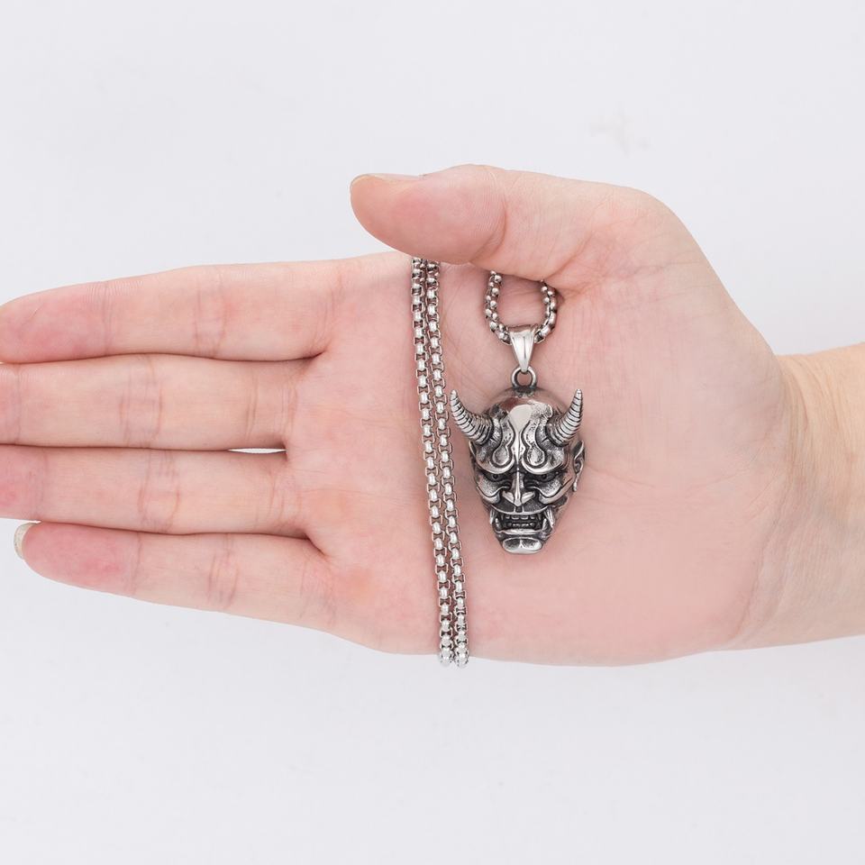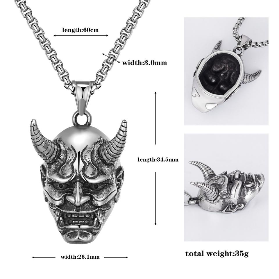 จี้สร้อยคอรูปหน้ากากปีศาจสำหรับผู้ชาย ทำจากเหล็กกล้าไร้สนิม ชุบทอง สไตล์วินเทจ เหมาะสำหรับเป็นของขวัญวันครบรอบ เครื่องประดับทางจิตวิญญาณ พร้อมอุปกรณ์ตกแต่งฮันญ่า