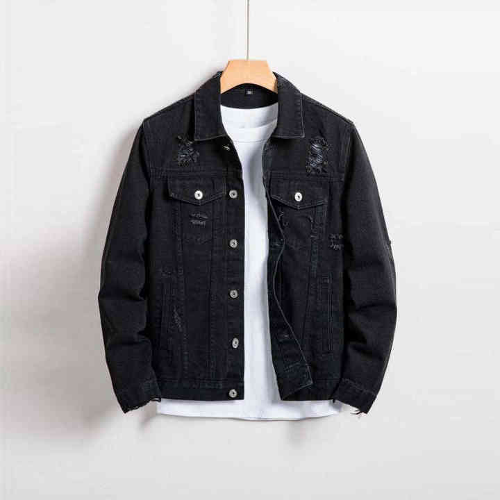 เสื้อแจ็คเก็ตยีนส์ผู้ชาย คอตั้ง สไตล์สตรีท ขาดๆ แบบลำลอง อุ่นสบายสำหรับฤดูหนาว ทรงหลวม ไซส์ใหญ่ เสื้อคลุมกันหนาว ขายส่ง รับสั่งทำ