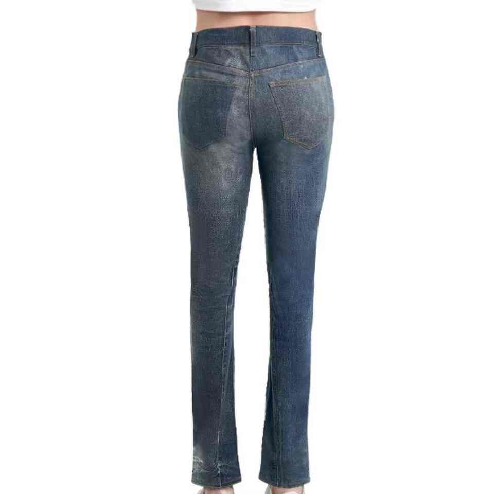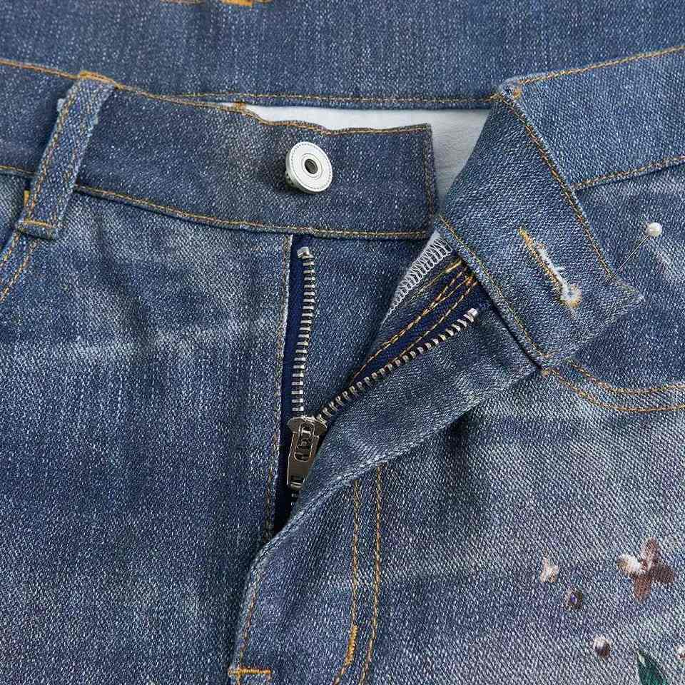 กางเกงยีนส์ผ้าเดนิมของผู้ชายกางเกงยีนส์บางพอดีตัวเอวกลางตรงระบายอากาศได้ดีกางเกงยีนส์สไตล์สตรีทแวร์ฤดูร้อน