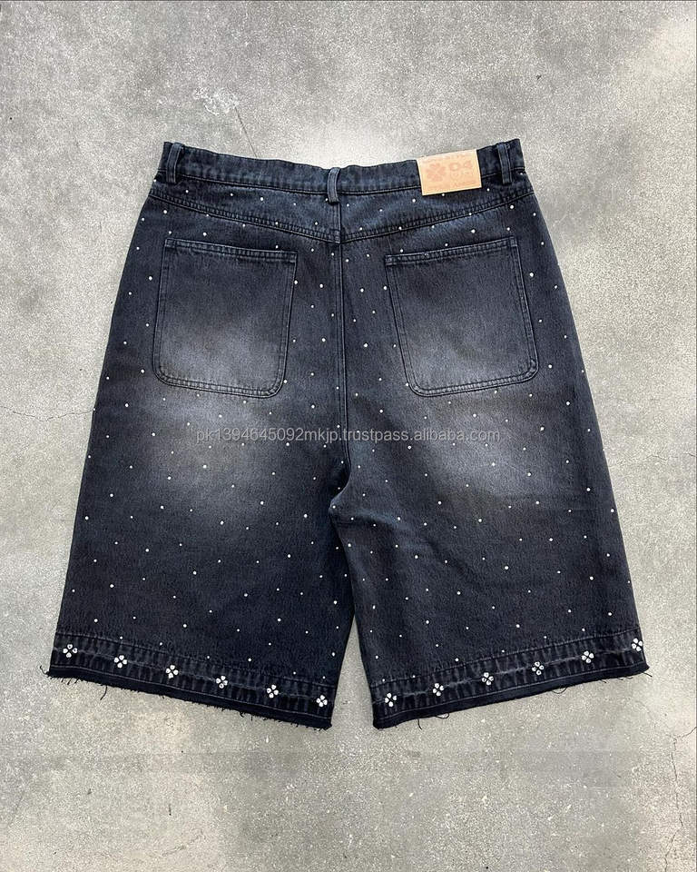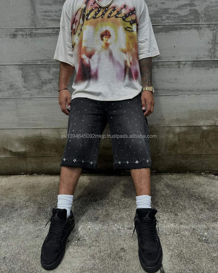 กางเกงขาสั้นผ้ายีนส์ของผู้ชายกางเกงขาสั้นผ้ายีนส์แนวสตรีทหลวมสำหรับผู้ชาย