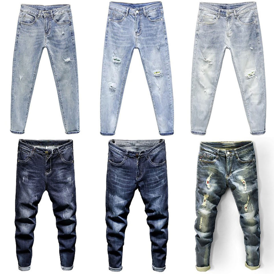 กางเกงยีนส์ขายาวสำหรับผู้ชาย, พร้อมกระดุมเพชรเม็ด3D ระบายอากาศสไตล์หวานพร้อมใส่ทำงาน
