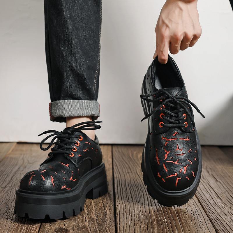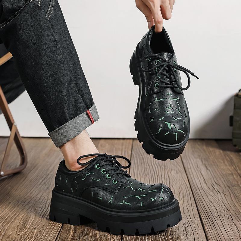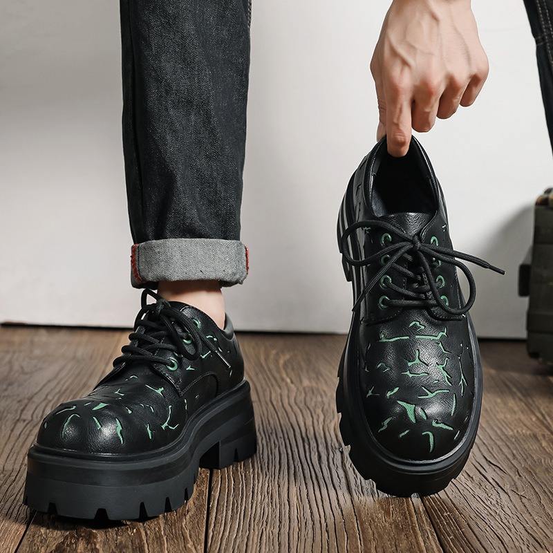 รองเท้าลำลองผู้ชาย ดีไซน์เนอร์คุณภาพสูง หนังแท้ลายแตก ทรง Derby หัวแหลม แบบผูกเชือก กันลื่น ระบายอากาศได้ดี น้ำหนักเบา
