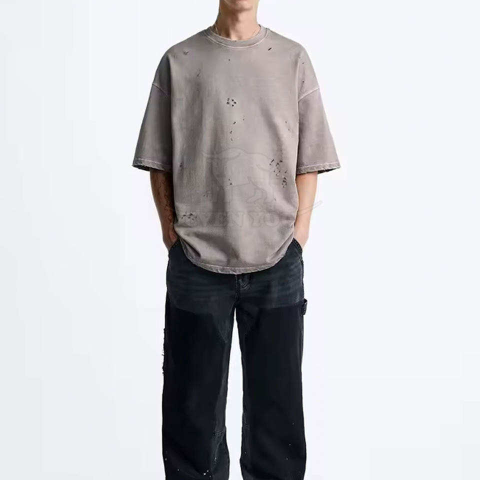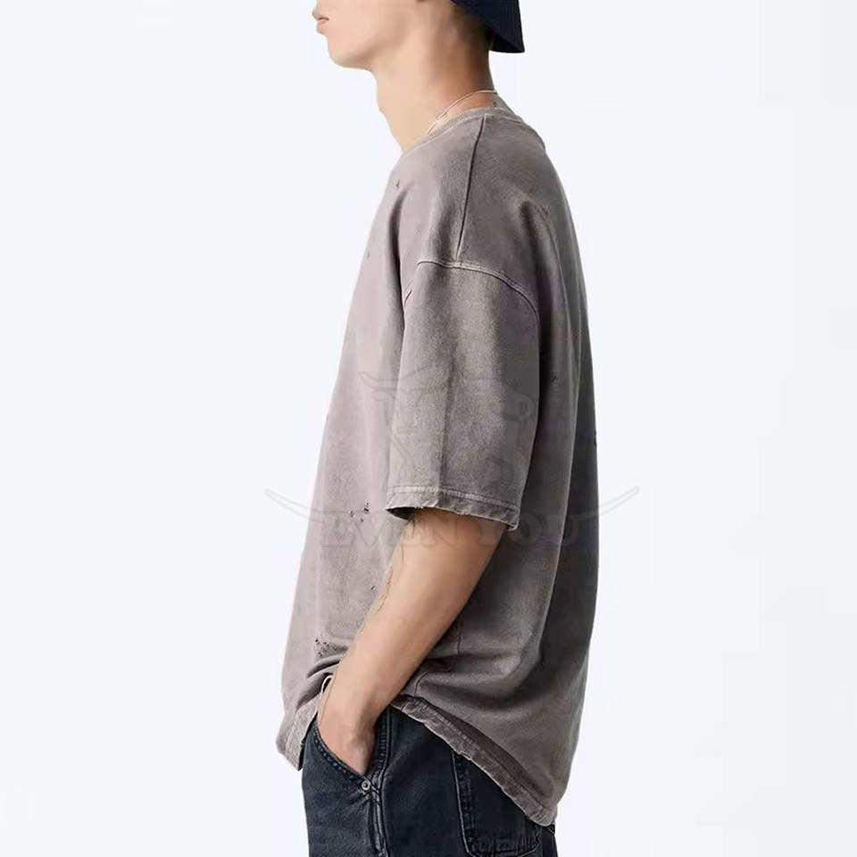 เสื้อยืดผู้ชายสไตล์ดิสเทรส พร้อมดีไซน์แบบกำหนดเองและแขนยาว สำหรับเสื้อผ้าแฟชั่น
