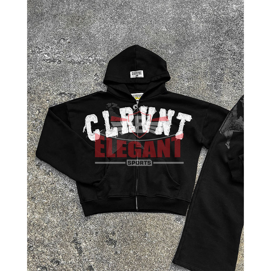ชุดเซ็ตแทรคสูทสตรีทแวร์ผู้ชายลายปักแบบดิสเทรส ล้างสีแบบแอซิดวอช พร้อมลายพื้นสีพื้น ชุดวอร์มน้ำหนักเบา เสื้อฮู้ดและกางเกงสำหรับวิ่ง
