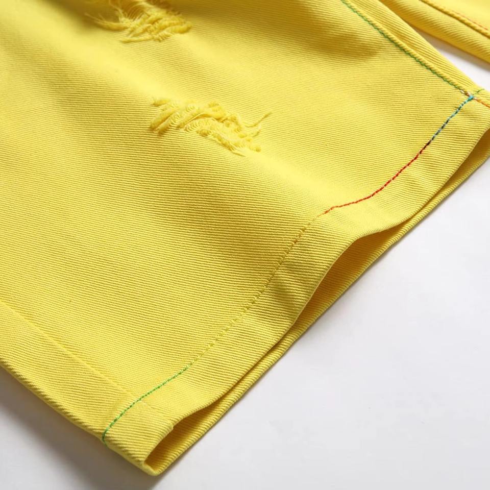 กางเกงยีนส์ขาสั้นผู้ชายทรงตรงเอวกลางผ้าฝ้ายเดนิมฟอกสีสไตล์ลำลองสำหรับฤดูร้อน