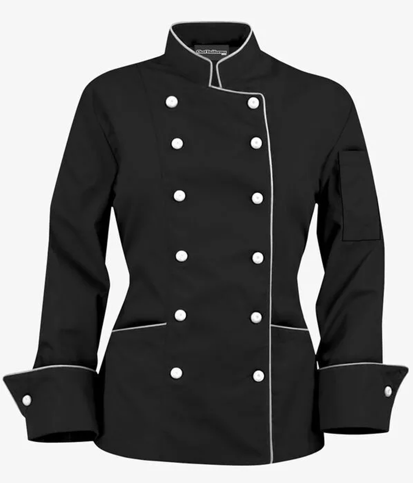 เสื้อเชฟกระดุมสองแถวของผู้ชายเสื้อแจ็กเก็ตกระดุมคู่พร้อมกระเป๋าดีไซน์ท่อแขนยาวสำหรับทำอาหารในครัว