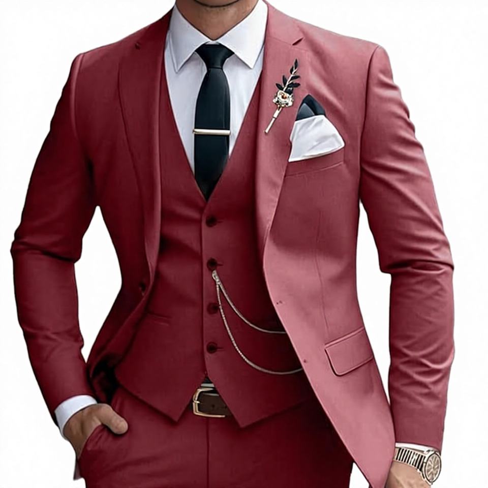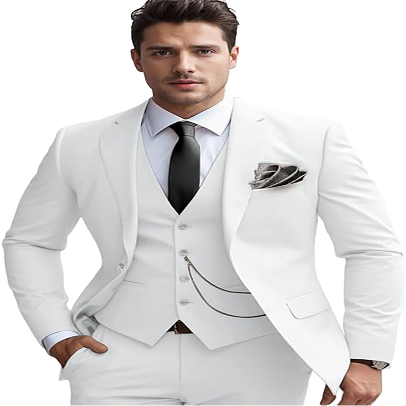 ชุดทักซิโด้ผู้ชายแบบกระดุมสองแถว ผ้า TR หรูหรา ชุด 3 ชิ้น สำหรับงานแต่งงานและงานทางการ