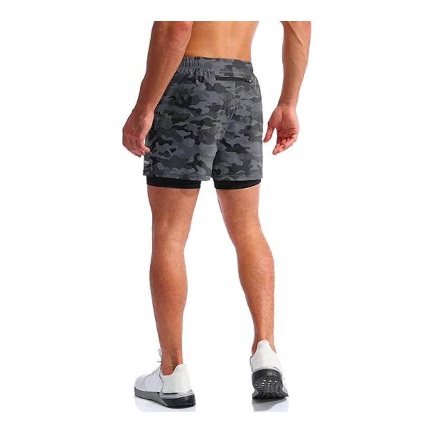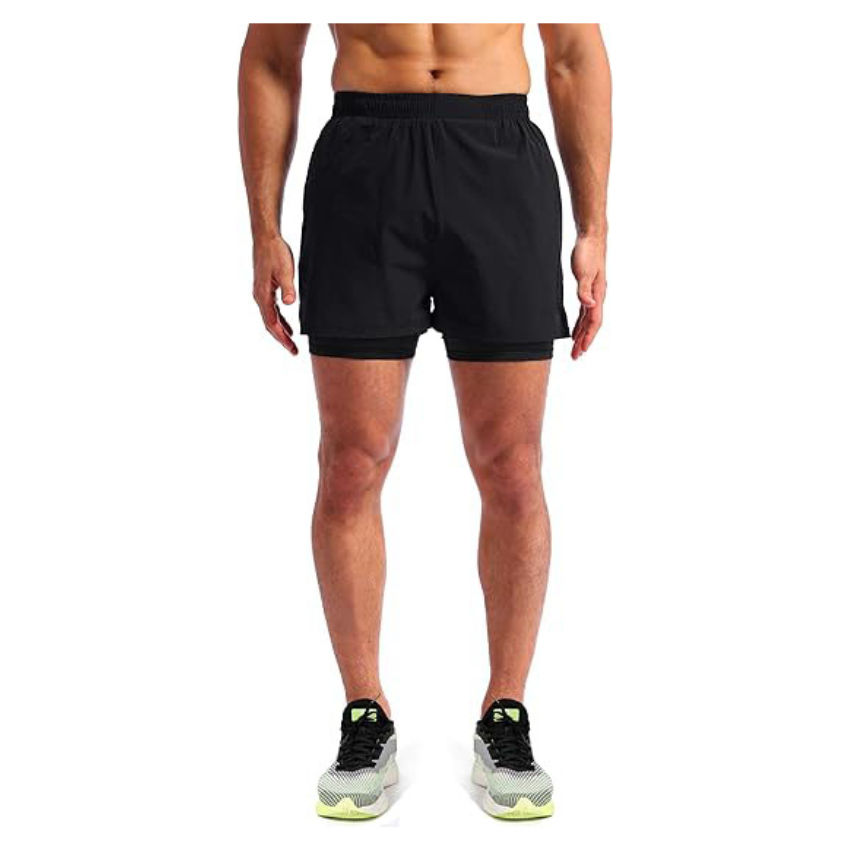 กางเกงขาสั้นผู้ชายสองชั้น กางเกงขาสั้นกีฬา 2-in-1 แห้งเร็ว ระบายอากาศได้ เหมาะสําหรับการวิ่งและฟิตเนส