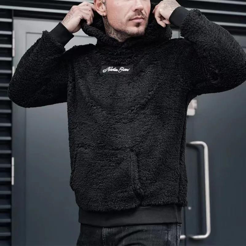เสื้อสเวตเตอร์กำมะหยี่มีฮู้ดสองด้านสำหรับผู้ชาย, เสื้อสเวตเตอร์ทรงหลวมอบอุ่นสีพื้นไซส์ใหญ่พิเศษแฟชั่นลำลองสวมหัวผ้าใยสังเคราะห์สำหรับฤดูใบไม้ร่วง