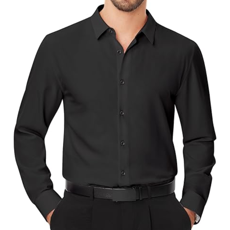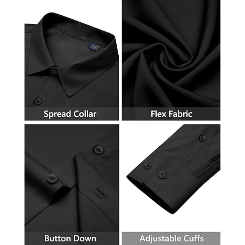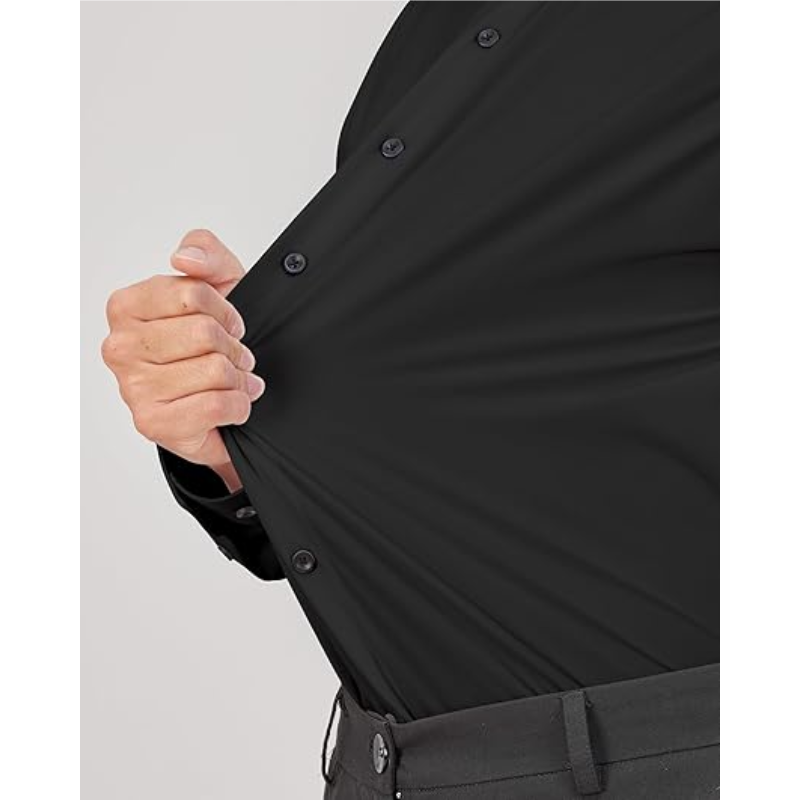 เสื้อเชิ้ตผู้ชายแขนยาวแบบยืดได้ เสื้อเชิ้ตทางการสีพื้น เสื้อเชิ้ตธุรกิจลำลองติดกระดุม สำหรับงานแต่งงานและงานพรอม
