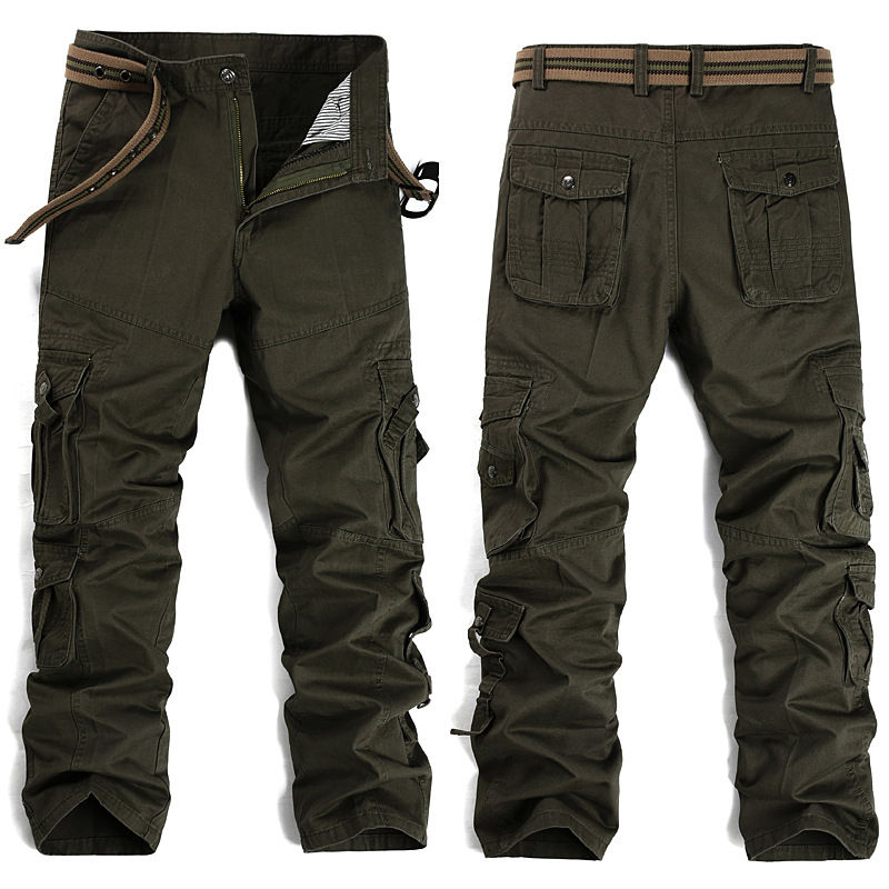 กางเกงคาร์โก้ทรงซาฟารีเอวสูงสำหรับผู้ชาย ผ้าฝ้าย 100% ทนทาน ใส่สบาย ใช้งานได้หลากหลาย เหมาะสำหรับทำงาน เดินป่า ใช้ในชีวิตประจำวัน ป้องกันการเกิดขุย