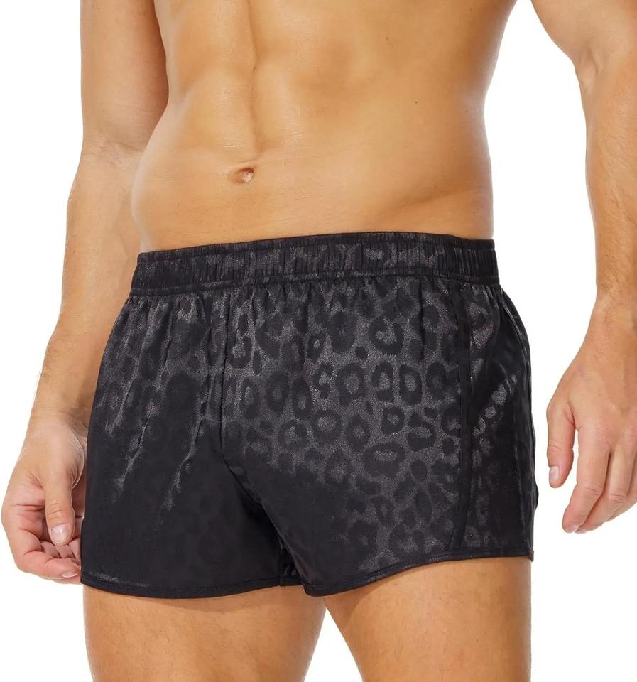 กางเกงขาสั้นฟิตเนสแห้งเร็วแบบไดนามิกของผู้ชายกางเกงสามส่วนป้องกันแสงสะท้อนสองชั้นสำหรับวิ่งบนถนน