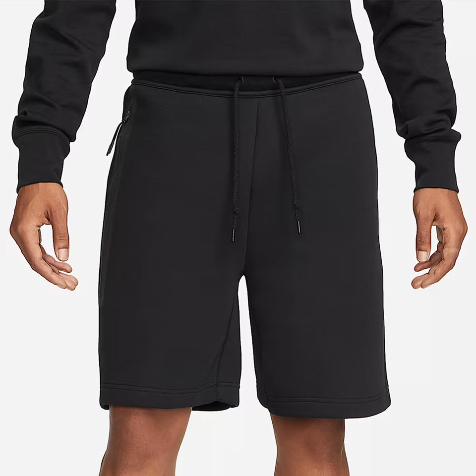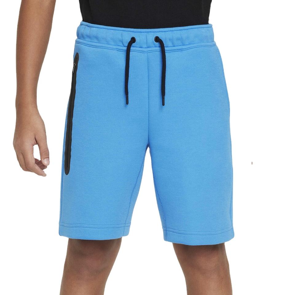 กางเกงขาสั้นผู้ชายผ้าฟลีซเทคโนโลยีสีน้ำเงินรักษ์โลก ความยาวระดับเข่า มีเชือกผูก ปรับแต่งโลโก้แบรนด์ได้ ลายเรียบ สไตล์สตรีทแวร์