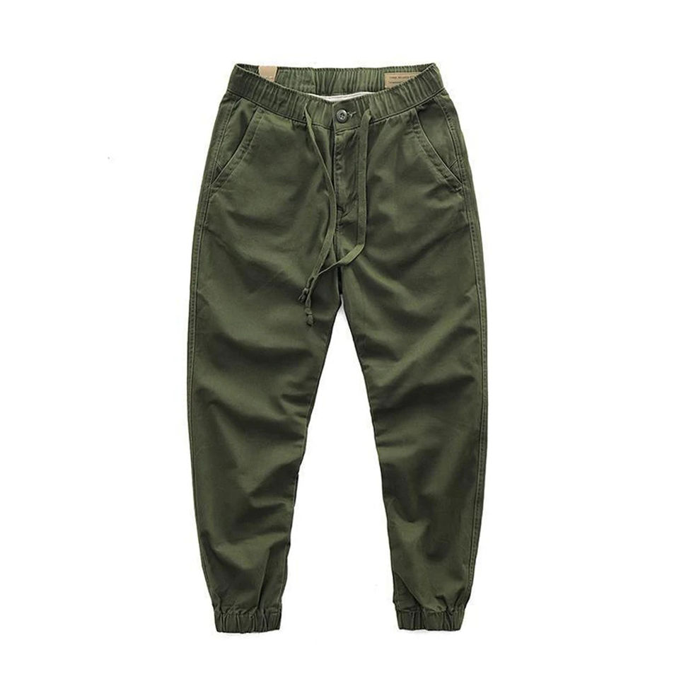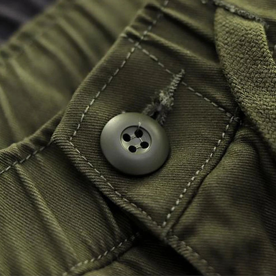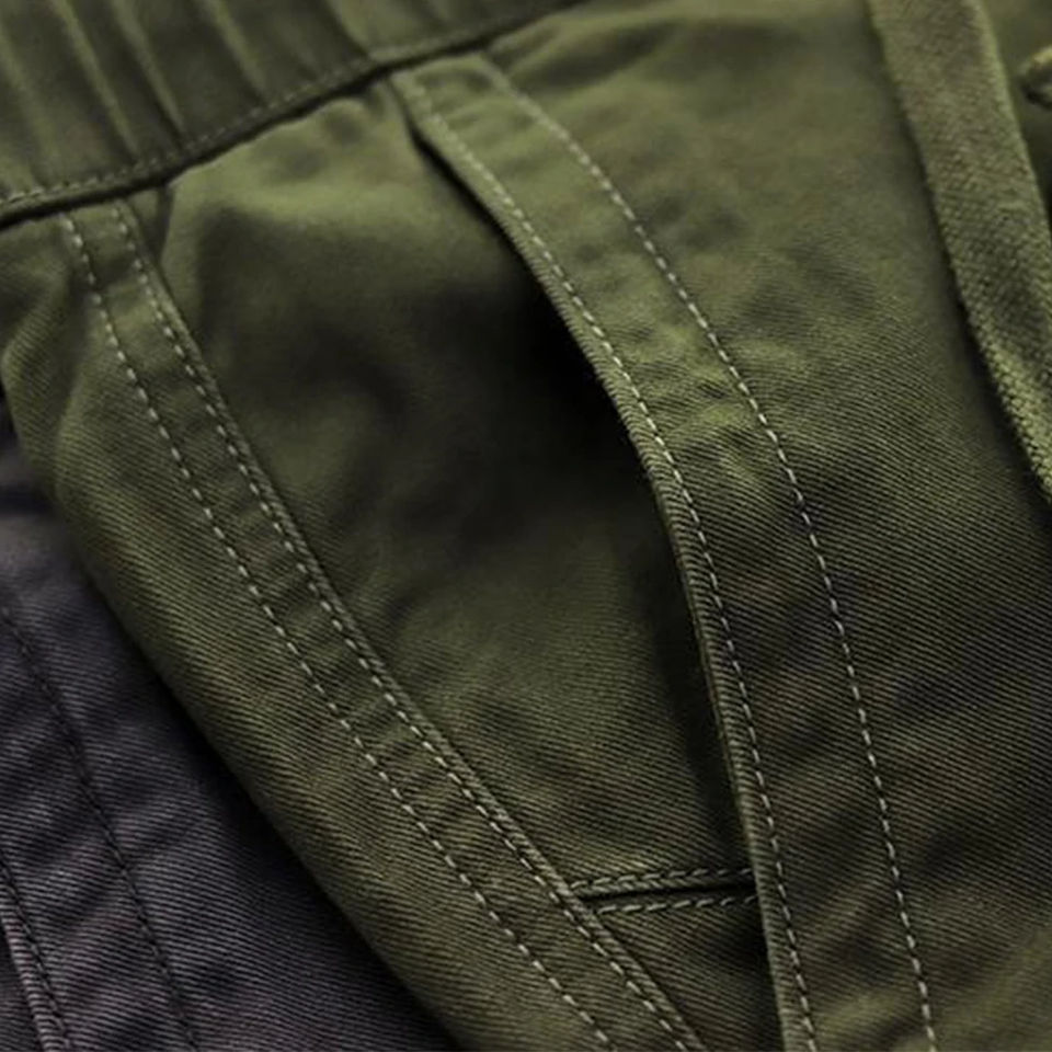 กางเกงคาร์โก้ผู้ชายสีพื้นผ้าฝ้ายฟลีซผสมแคนวาส ระบายอากาศ แห้งเร็ว เป็นมิตรต่อสิ่งแวดล้อม ไม่ยับ ขอบเอวยางยืด เหมาะสำหรับฤดูร้อน