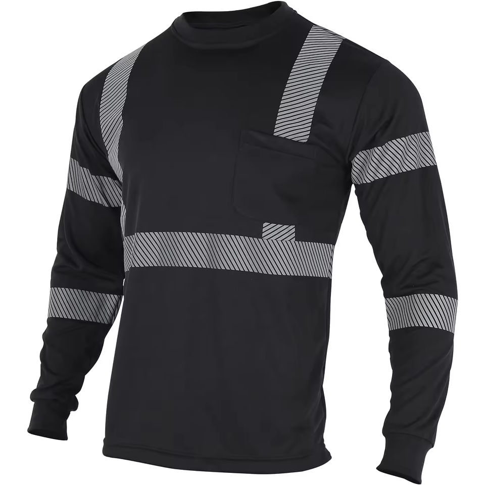 เสื้อทำงานผ้าโพลีเอสเตอร์100% เป็นมิตรกับสิ่งแวดล้อมเสื้อทำงานผ้าโพลีเอสเตอร์แขนสั้นและยาวสะท้อนแสงมองเห็นได้ชัดเจน