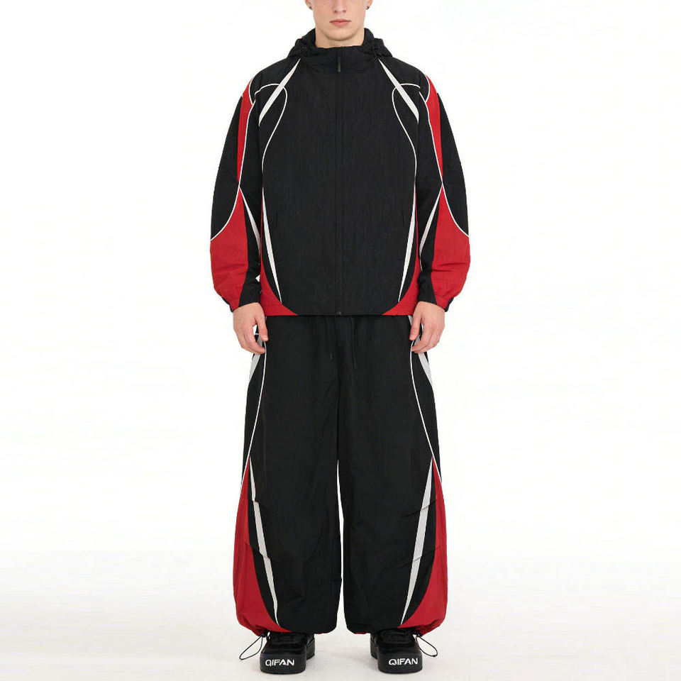 ชุดวอร์มไนลอนกันลมแบบเป็นมิตรต่อสิ่งแวดล้อมสำหรับผู้ชาย ไซส์พลัส สกรีนโลโก้ได้ แห้งเร็ว ตะเข็บเย็บแบบพิเศษ สีพื้น