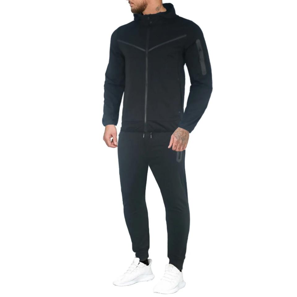 ชุดวอร์ม2ชิ้นสำหรับฤดูหนาวของผู้ชายเสื้อยืดแขนยาวมีฮู้ดสีทึบใส่ทำงานเสื้อกันหนาวกางเกงชุดโลโก้ด้านหน้า
