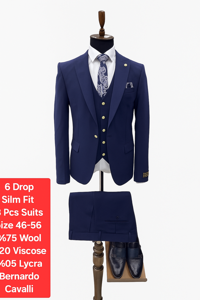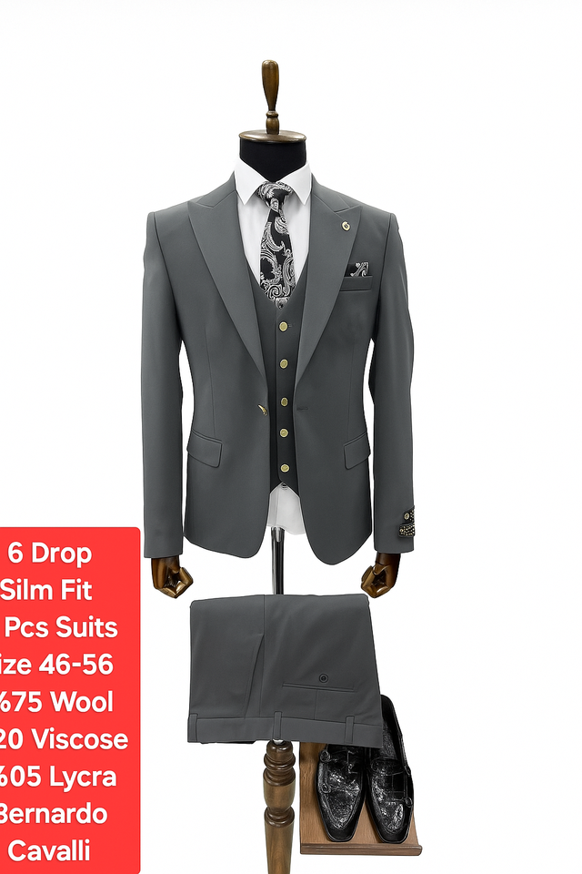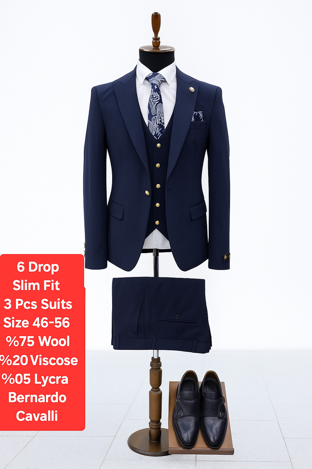 ชุดสูทผู้ชายสไตล์อิตาเลียนสุดหรูสำหรับงานแต่งงาน งานธุรกิจ แบบคลาสสิก ทรงเข้ารูป สามชิ้น สีดำ ผ้าฝ้ายผสมสแปนเด็กซ์