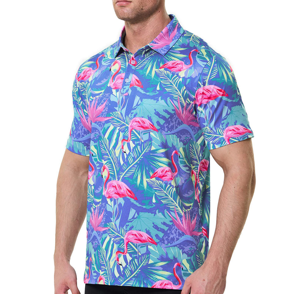 เสื้อโปโลแขนสั้นสำหรับผู้ชายเสื้อกอล์ฟแห้งเร็วผ้าโพลีเอสเตอร์พิมพ์ลายพรางผ้าสแปนเด็กซ์