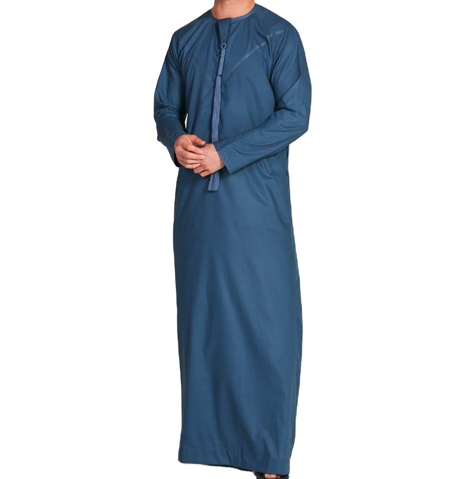 Emirati thobe สำหรับผู้ชายพิมพ์ลายออกแบบได้ตามต้องการระบายอากาศได้ดีทำจากผ้านิ่มและขายส่งสำหรับมุสลิมความยาว