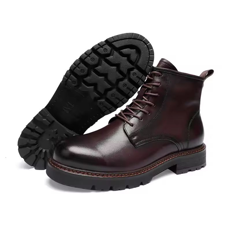 รองเท้าผ้าตาข่ายผูกเชือกสไตล์บร็อกแบบเรโทรอังกฤษ พื้นหนา กันน้ำ ระบายอากาศ กันลื่น ยืดหยุ่น เพิ่มความสูง สีดำ สำหรับผู้ชาย