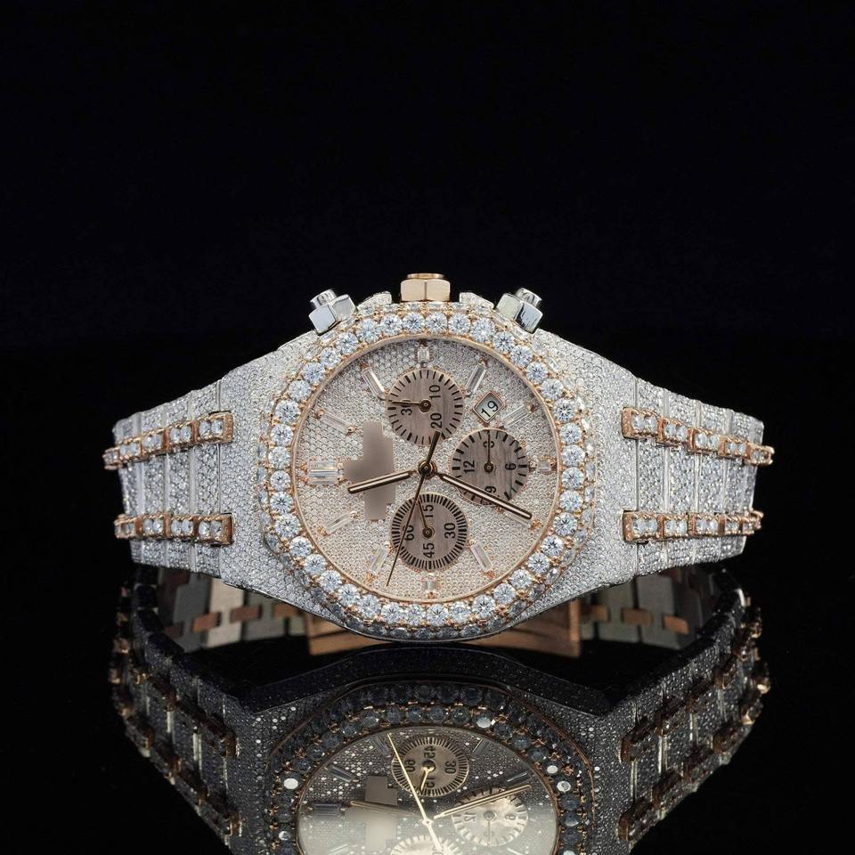 นาฬิกาข้อมือผู้ชายสุดหรู ระบบออโตเมติก โครโนกราฟ ประดับเพชรแล็บโกรว์ ตัวเรือนสแตนเลส สไตล์ฮิปฮอป เครื่องญี่ปุ่น พร้อมฟังก์ชั่นวันที่