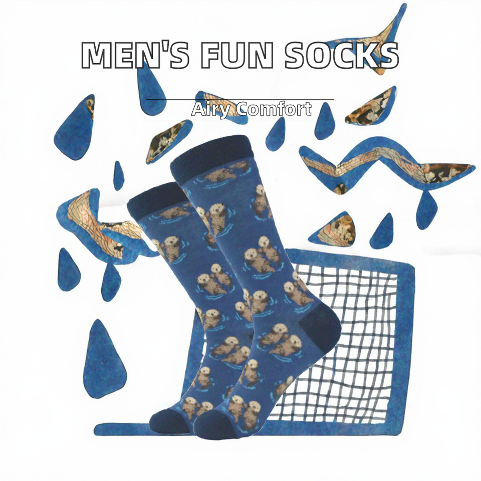 ถุงเท้าผู้ชายลายการ์ตูนสุดฮา ลายเพนกวิน โลมา ฉลาม โคอาล่า สำหรับฤดูใบไม้ร่วงและฤดูหนาว แฟชั่นถุงเท้าผู้ชาย