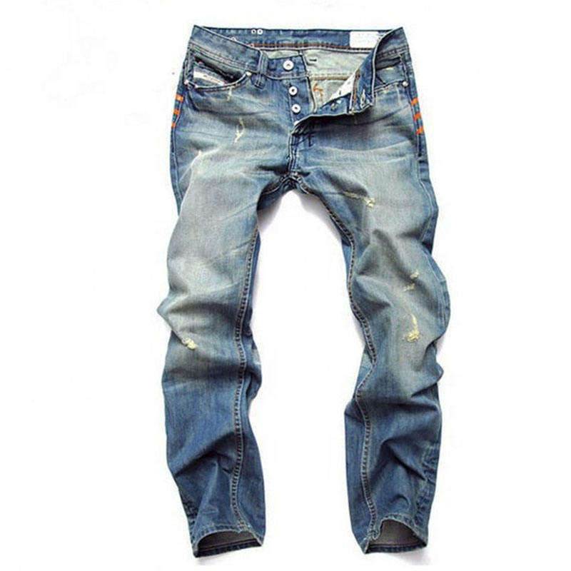 กางเกงยีนส์ผู้ชาย แฟชั่นผ้าฝ้าย 100% เอวกลาง ทรงลำลอง ระบายอากาศได้ดี ซักแล้วใส่สบาย