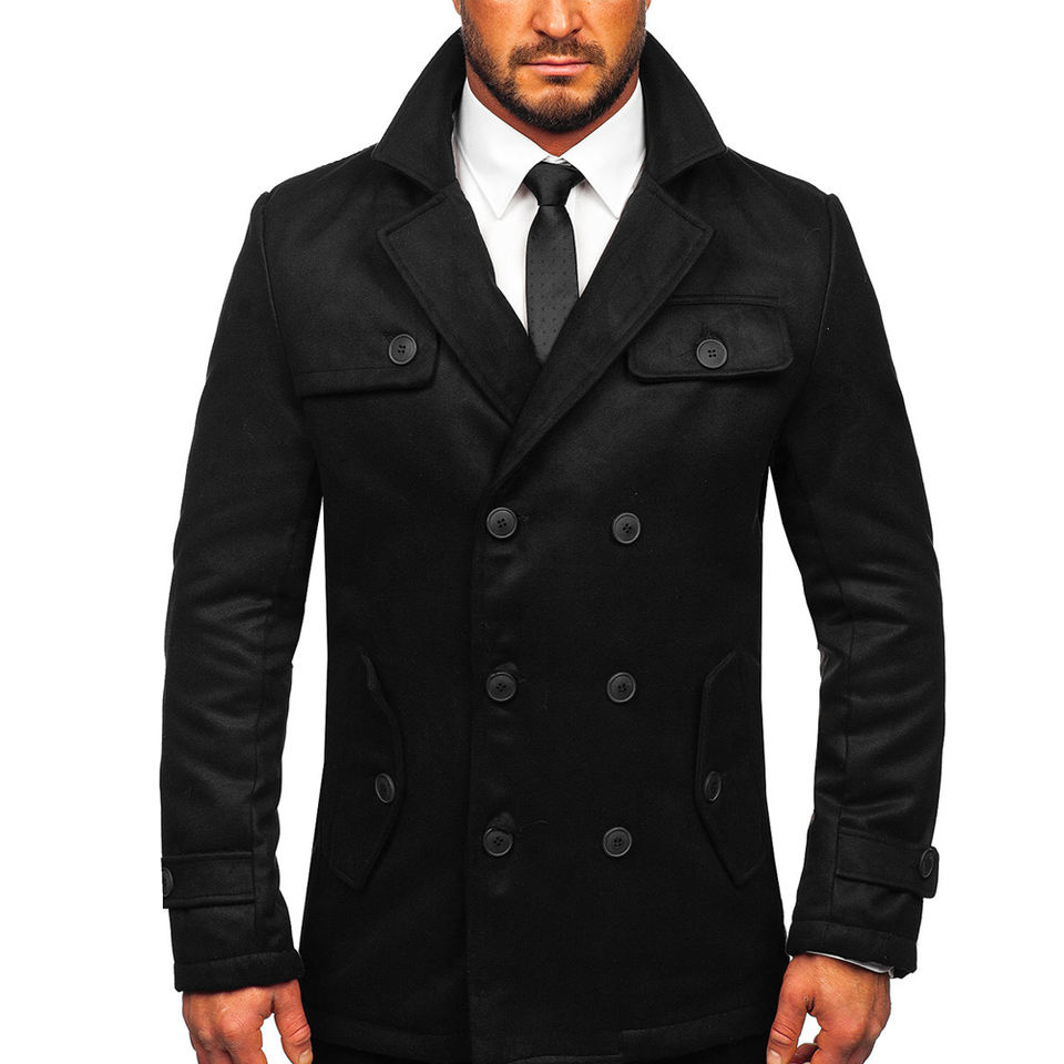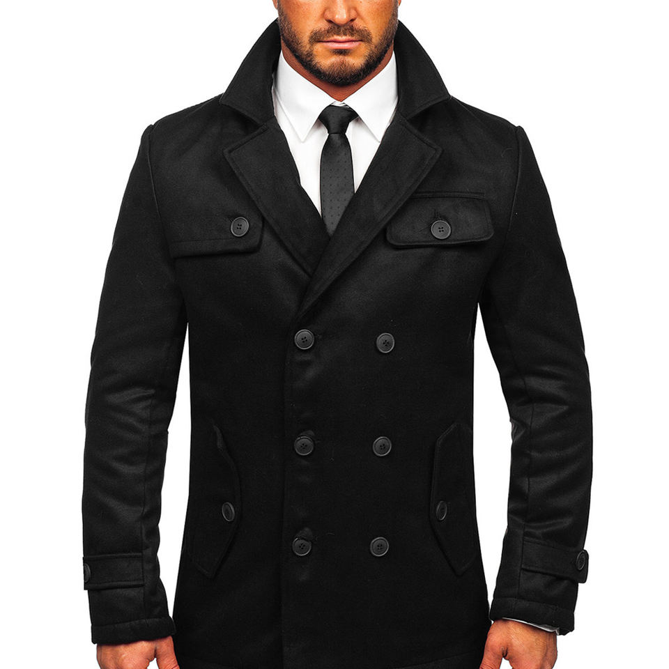 เสื้อโค้ทแฟชั่นสำหรับผู้ชาย-เสื้อกันหนาวอบอุ่นและสง่างามสำหรับผู้ชายแจ็คเก็ตหนาและนุ่มพร้อมปกคอพับ/ระบายอากาศได้