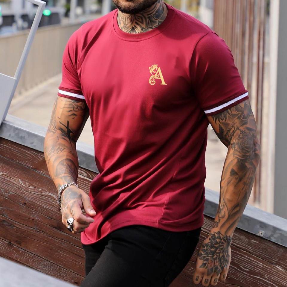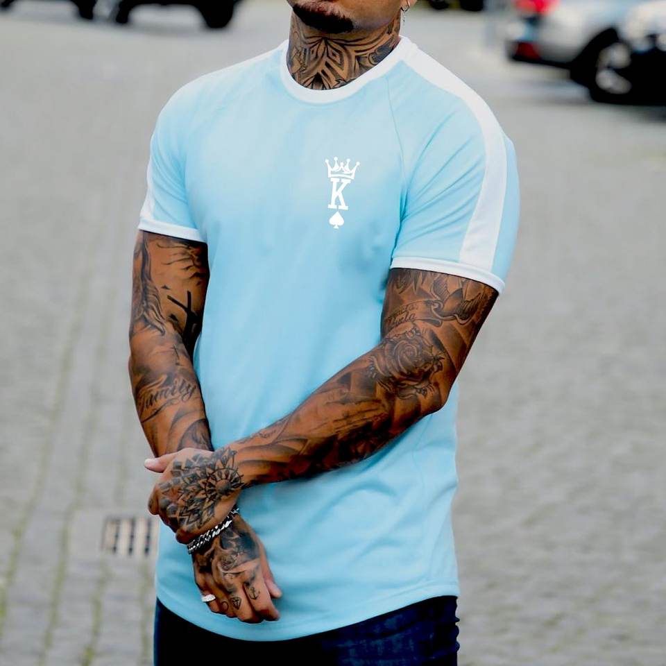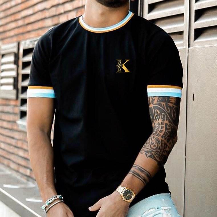 เสื้อยืดแขนสั้นทรงสลิมฟิตลำลองผู้ชาย,แฟชั่นพิมพ์ลาย K สี