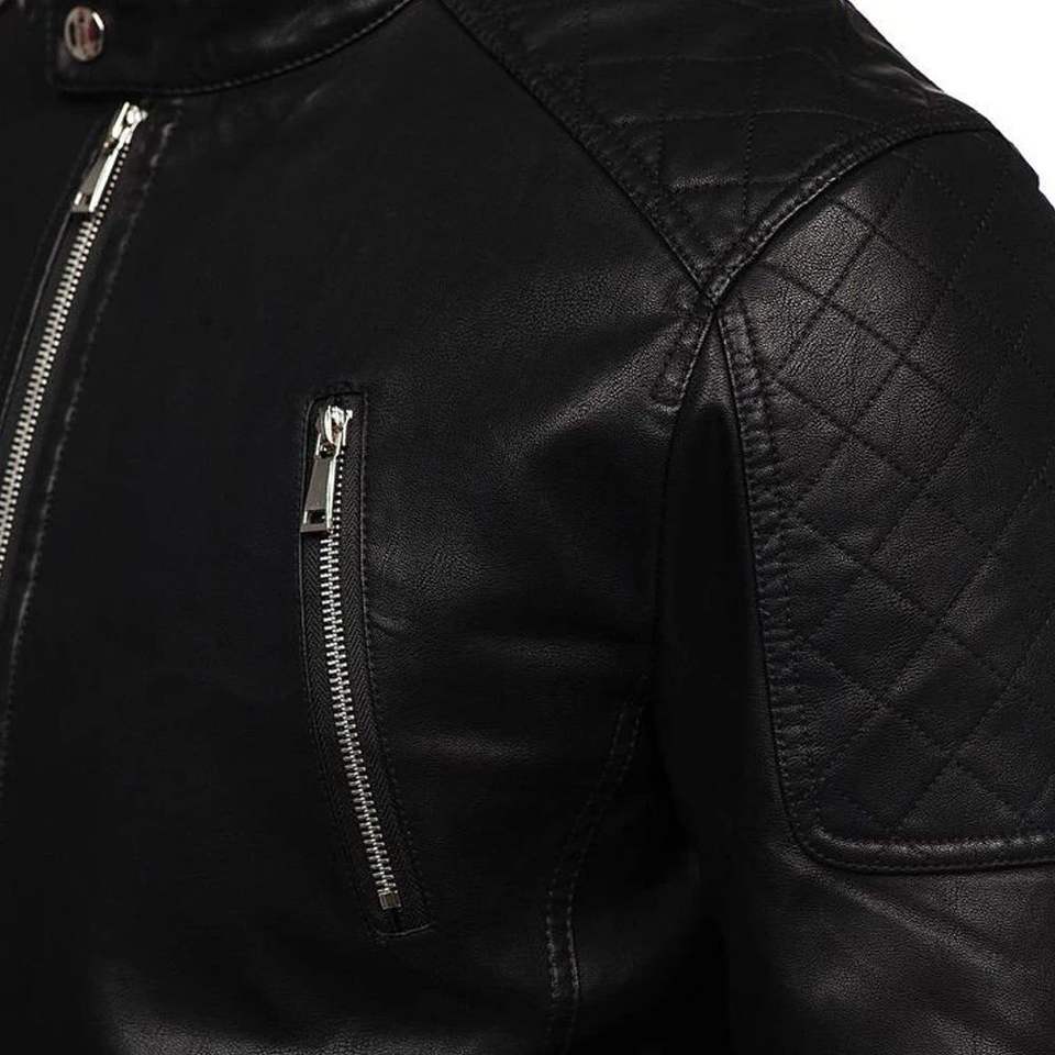 เสื้อกันลมแฟชั่นสำหรับผู้ชาย, เสื้อแจ็คเก็ตนักขี่มอเตอร์ไซค์หนัง PU ปกตั้งเคลือบด้วยตัวอักษร