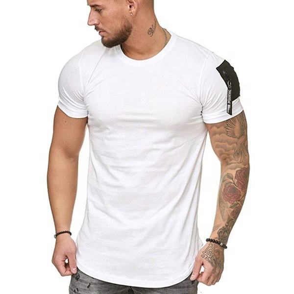 เสื้อออกกำลังกายแขนสั้นสำหรับผู้ชาย,เสื้อยืดกีฬาสีพื้นแฟชั่นแบบลำลอง
