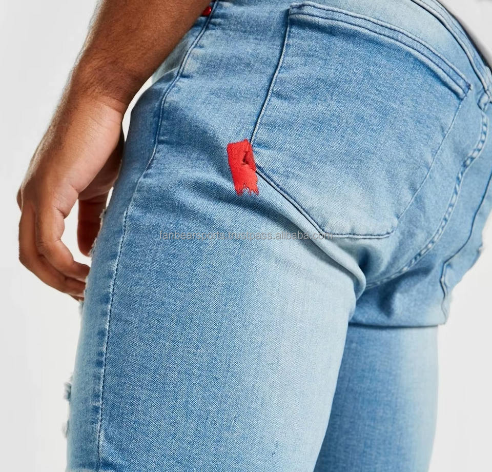 กางเกงยีนส์ขาสั้นผู้ชายทรงสลิมยืดได้ ผ้าเดนิมบาง สีฟ้าอ่อน ดีไซน์ล่าสุด ผลิตในปากีสถาน
