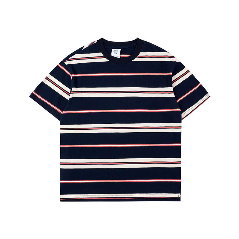 เสื้อยืดแขนสั้นลายทางแฟชั่นสำหรับผู้ชายสไตล์อินเทรนด์บล็อกสีน้ำหนักเบานอกสถานที่ในช่วงสุดสัปดาห์