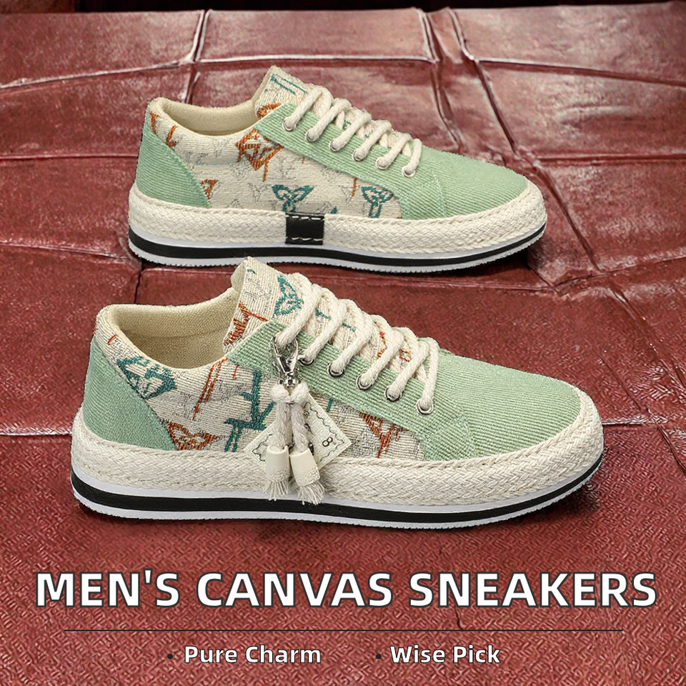 รองเท้าผ้าใบแฟชั่นผู้ชาย ระบายอากาศได้ดี กันลื่น พื้นเรียบ สไตล์สปอร์ต ลำลอง ผูกเชือก ทนทาน เหมาะสำหรับฤดูร้อน
