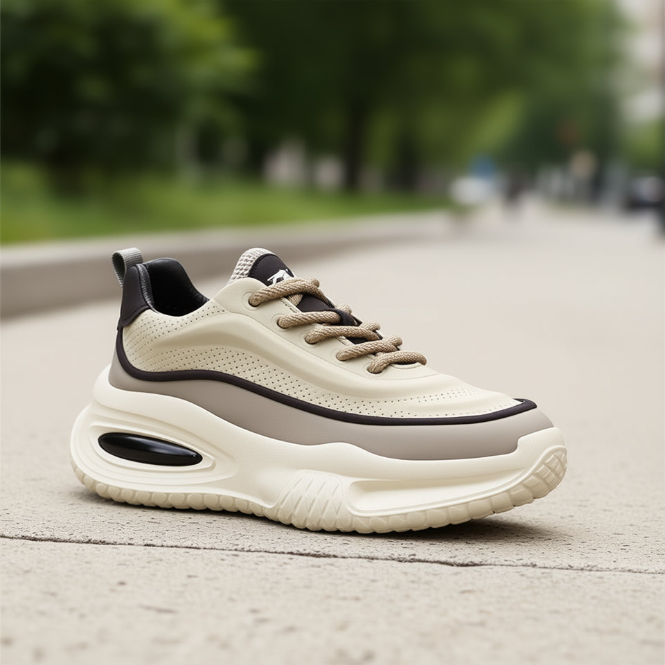 Men's Fashion Trend Casual Walking Shoes Thick Sole Heightening Rubber Outsole Lace-up Round Toe All Seasons Dad Shoes