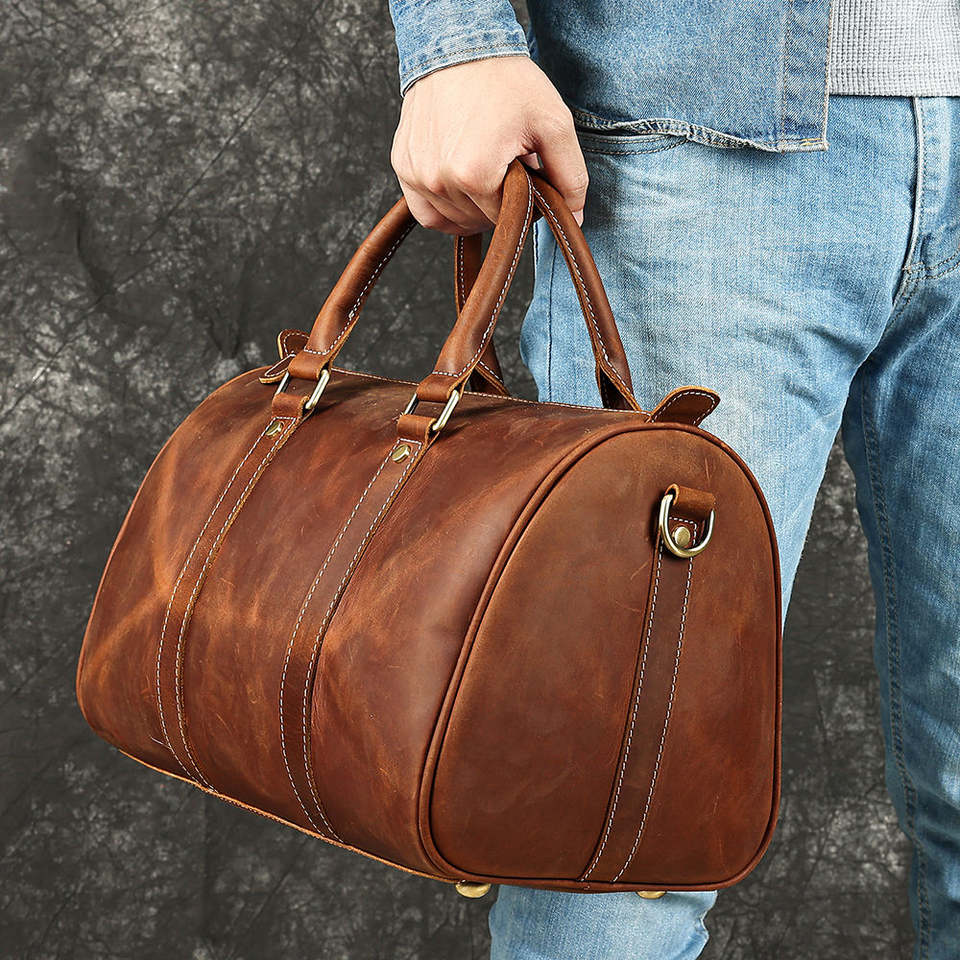 กระเป๋าทรงดัฟเฟิลสำหรับสุดสัปดาห์ทำด้วยมือหนังแท้พับได้และทนทานกระเป๋าเดินทางข้ามคืน