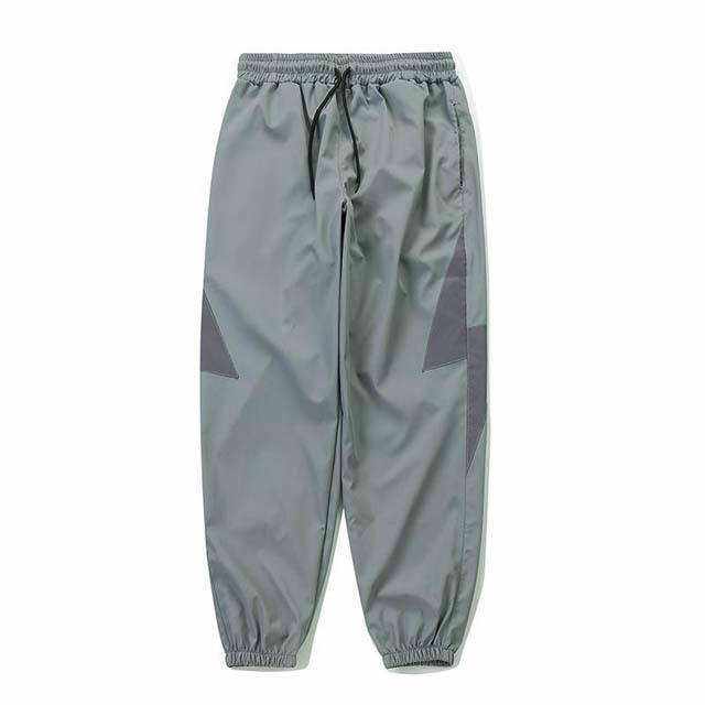 กางเกงกันลมผ้าไนลอนแฟชั่นสำหรับผู้ชายกางเกงฟิตเนสเอวสูงกันรอยยับสไตล์สปอร์ตลำลองกางเกงทรงพอดีตัวแบน