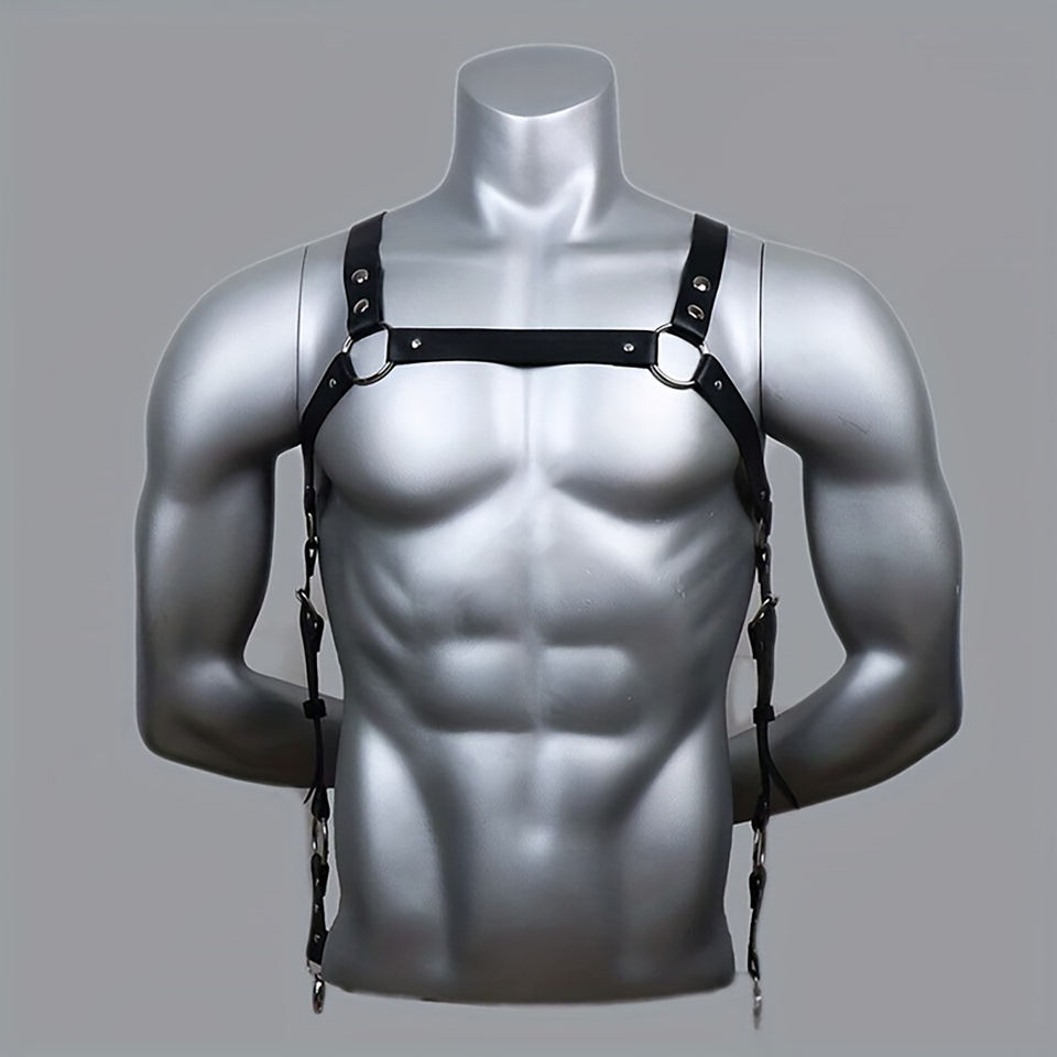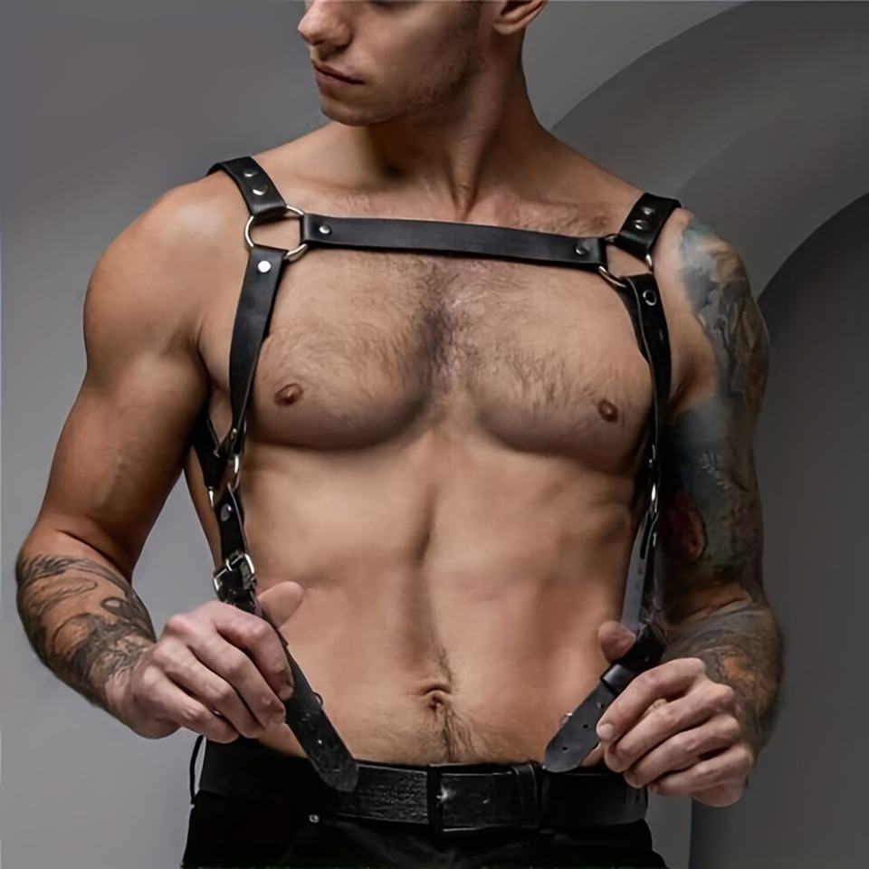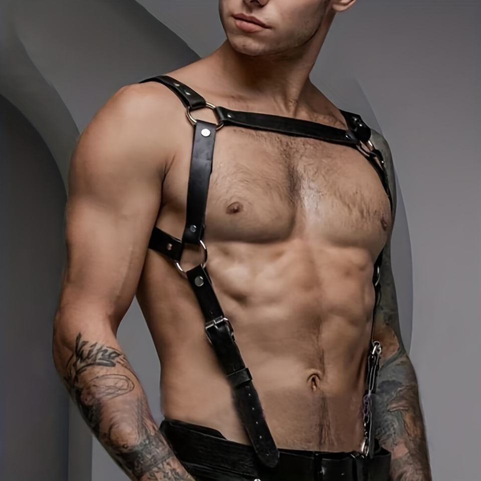 ชุดเที่ยวคลับหนังเทียมสำหรับผู้ชายชุดชั้นในเซ็กซี่สายรัดหน้าอกอุปกรณ์เสริมสำหรับเล่นตามบทบาททางเพศ