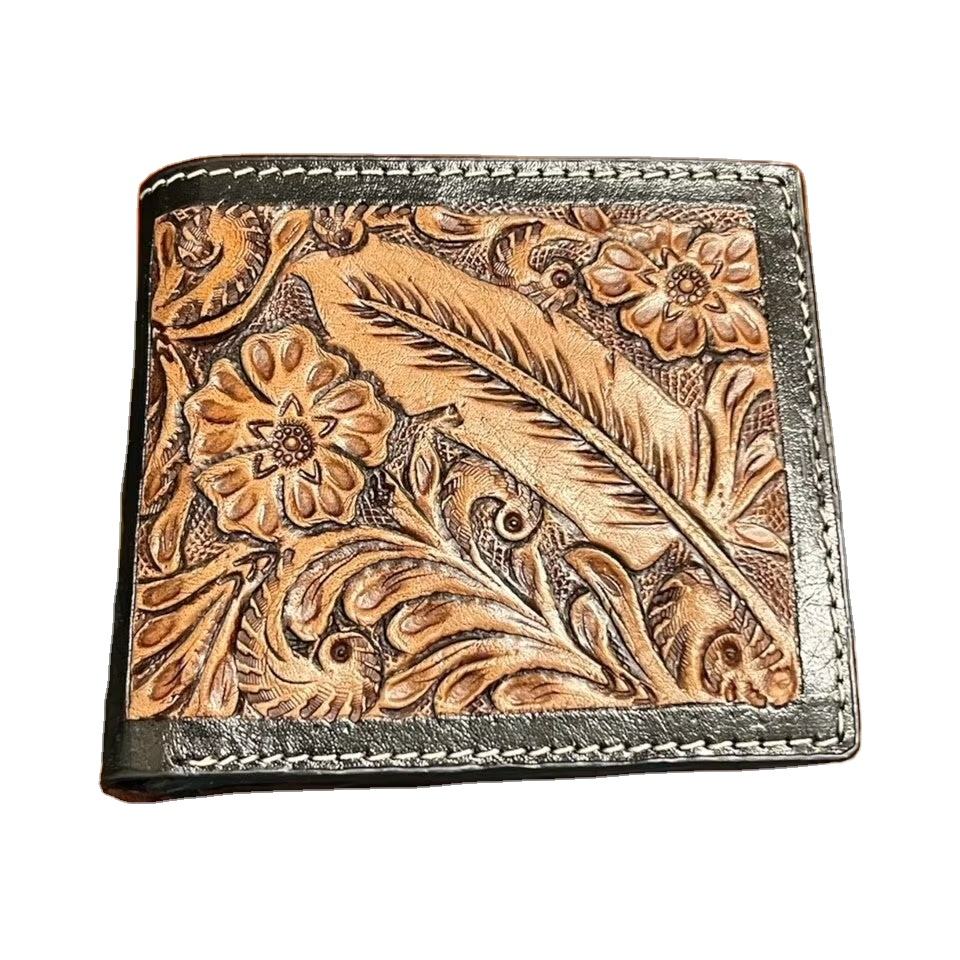 กระเป๋าสตางค์หนังวัวแบบสั้นของผู้ชายทำมือขนนกเปิดปิดได้ป้องกัน RFID บุผ้าไนล่อนสำหรับผู้ซื้อขายส่ง