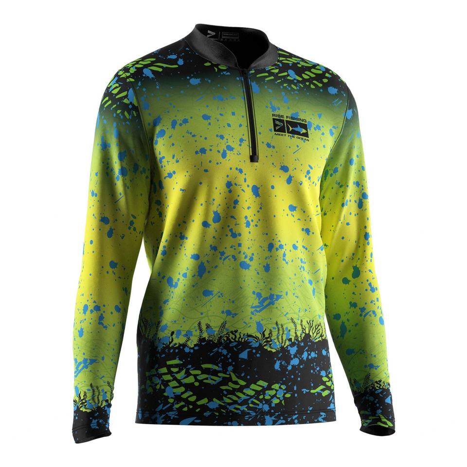 เสื้อตกปลาผู้ชาย แขนยาว คอซิป ¼ ซิป ระบายเหงื่อ แห้งเร็ว เสื้อออกกำลังกาย