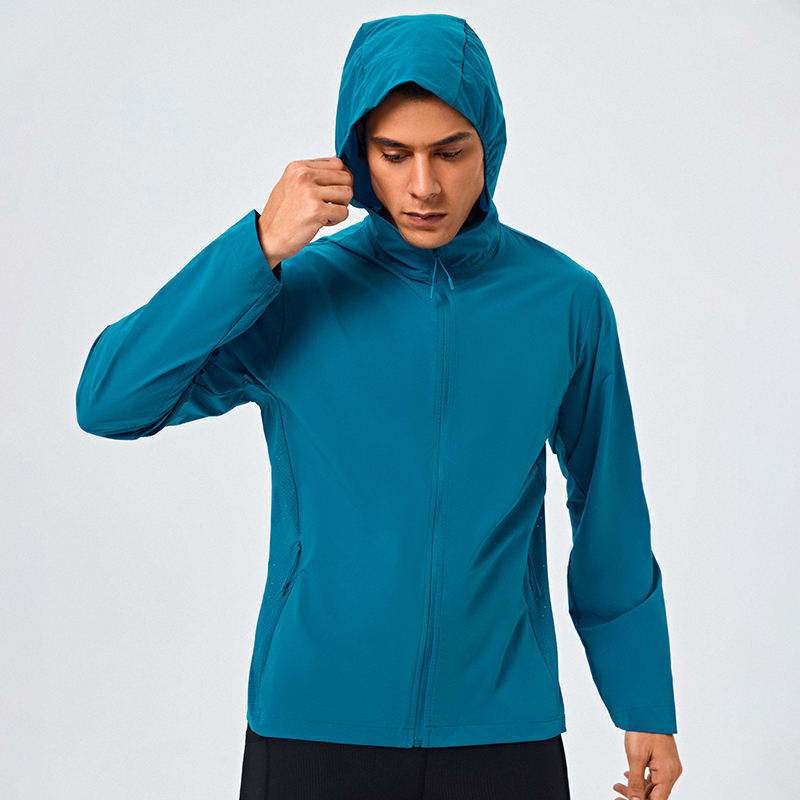 เสื้อแจ็คเก็ตออกกำลังกายผู้ชาย แนวสปอร์ต แอคทีฟแวร์ ปักโลโก้ได้ กันลม กระชับรูปร่าง มีฮู้ด แห้งเร็ว สีตัดกัน มีไซส์ใหญ่