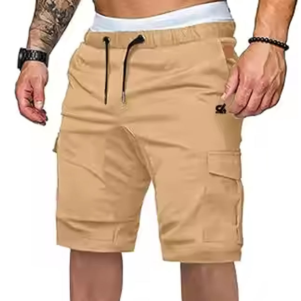 กางเกงขาสั้นออกกำลังกายผู้ชาย เอวกลาง ผ้าแคนวาส สไตล์ใหม่ สีพื้น น้ำหนักเบา แห้งเร็ว ผ้าฝ้าย ปรับแต่งขนาดและโลโก้ได้ ออกแบบสีได้