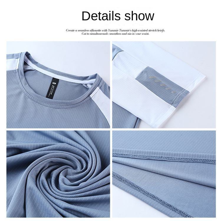 เสื้อยืดกีฬาผู้ชาย แห้งเร็ว ผ้าไหมน้ำแข็ง ยืดหยุ่น ทรงหลวม สำหรับฤดูร้อน วิ่ง ออกกำลังกาย พักผ่อน แขนสั้น สำหรับผู้ใหญ่