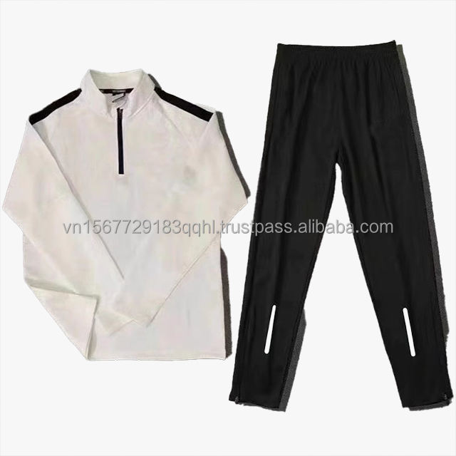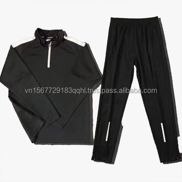 Men's Fitness Suit Set Quick Dry Training Regular Crew Neck Long Sleeve Half Zip Running Top Printed New Style Sportswear