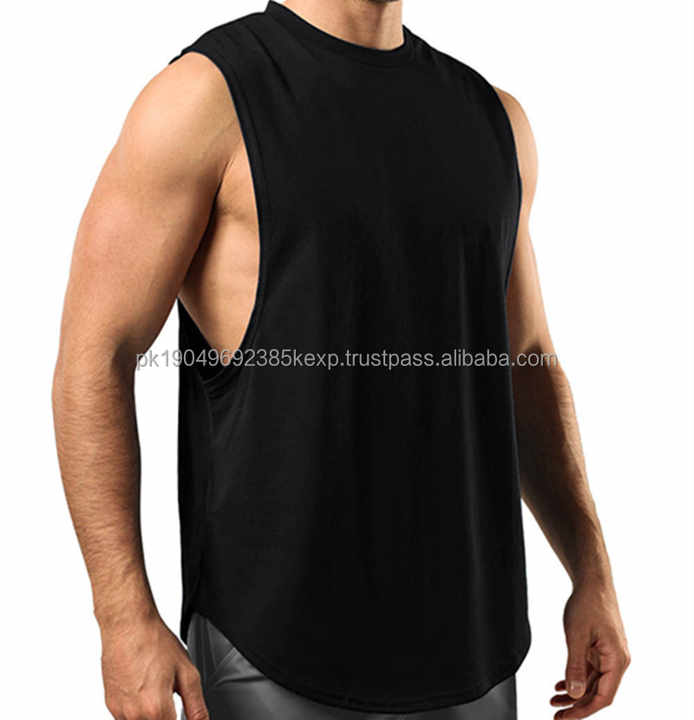 เสื้อยืดฟิตเนสผู้ชาย เสื้อกีฬา คอกลม ชายเสื้อโค้ง แขนกุด เสื้อกล้ามยืดหยุ่น สีพื้น เสื้อกล้ามออกกำลังกายผู้ชาย