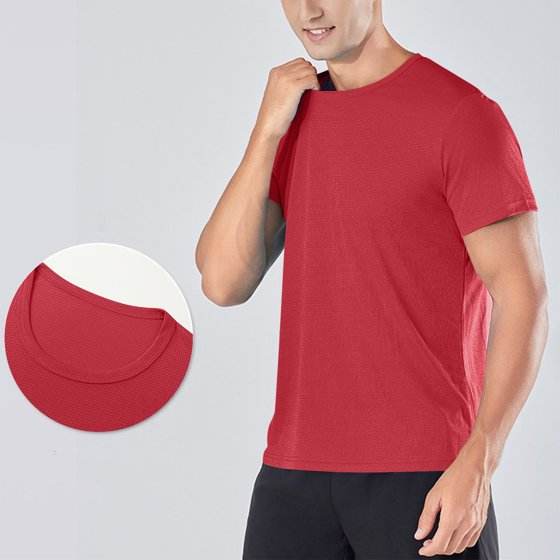 เสื้อยืดออกกำลังกายแขนแร็กแลนคอกลมระบายอากาศได้เสื้อยืดออกกำลังกายธรรมดาน้ำหนักเบาใส่สบายสำหรับผู้ชาย