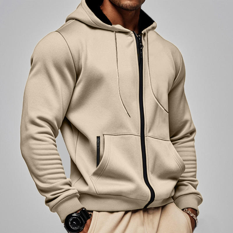 เสื้อฮู้ดบุขนแกะสำหรับผู้ชาย ชุดเสื้อสเวตเชิ้ตสีพื้นแบบซิป แขนยาว ชุดลำลองสำหรับเล่นกีฬา ฤดูใบไม้ร่วง ฤดูหนาว สีกากี สีดำ สีเทา สีกรมท่า