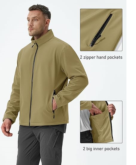 เสื้อแจ็คเก็ตผู้ชายบุขนแกะแบบนุ่ม น้ำหนักเบา กันน้ำ กันลม แบบซิป เหมาะสำหรับฤดูหนาว เสื้อกันฝน สำหรับเดินป่าและกิจกรรมกลางแจ้ง