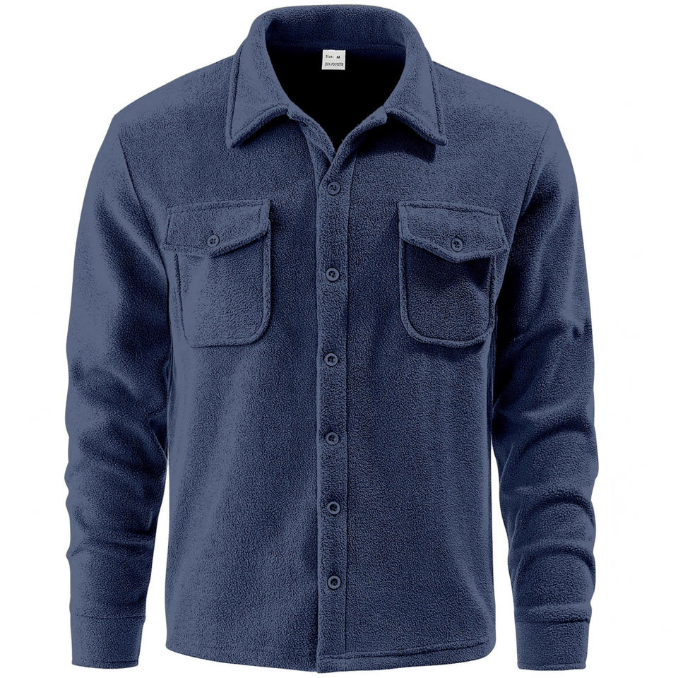 เสื้อเชิ้ตแขนยาวผ้าฟลีซสำหรับผู้ชาย เสื้อแจ็คเก็ตสำหรับทำงานกลางแจ้ง ล่าสัตว์ กันลม สวมใส่สบาย ชายเสื้อโค้งมน ผ้า 100% พร้อมป้าย
